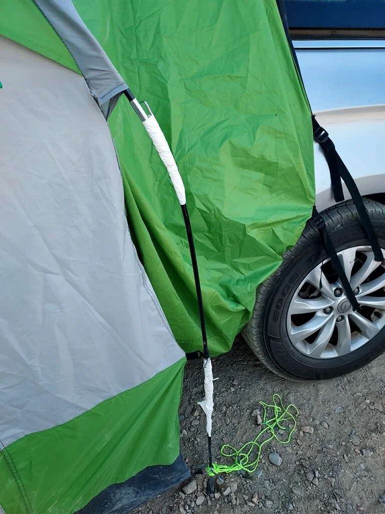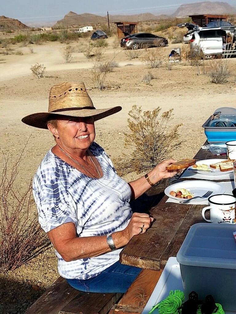 But putting up a tent in super windy conditions proved challenging. The tent almost took off like a weather balloon and we snapped one of our tent poles. Patti rose to the occasion in true McGiver fashion and jury rigged it with stakes and string. New poles had to be shipped and sent to our cousins in Goodyear, AZ.