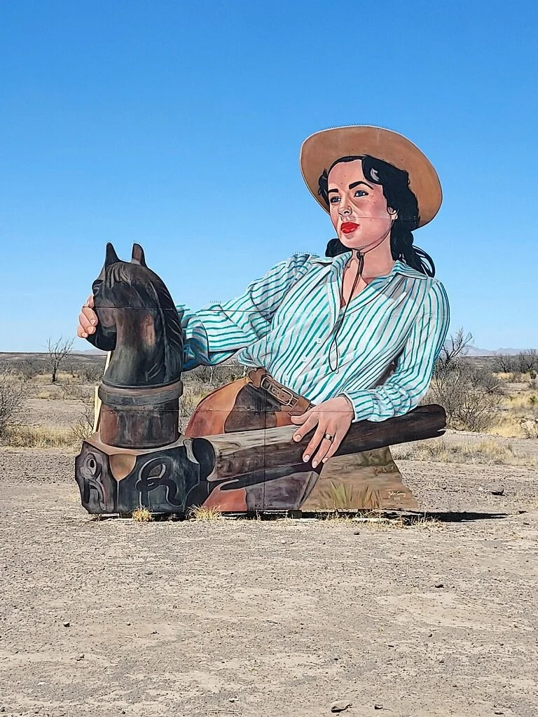 On our way out of town, we accidentally ran across a whole diorama of Giant out on the highway near the oil field where the movie was filmed, with lifesize cutouts of the actors and even a speaker playing songs from the movie.