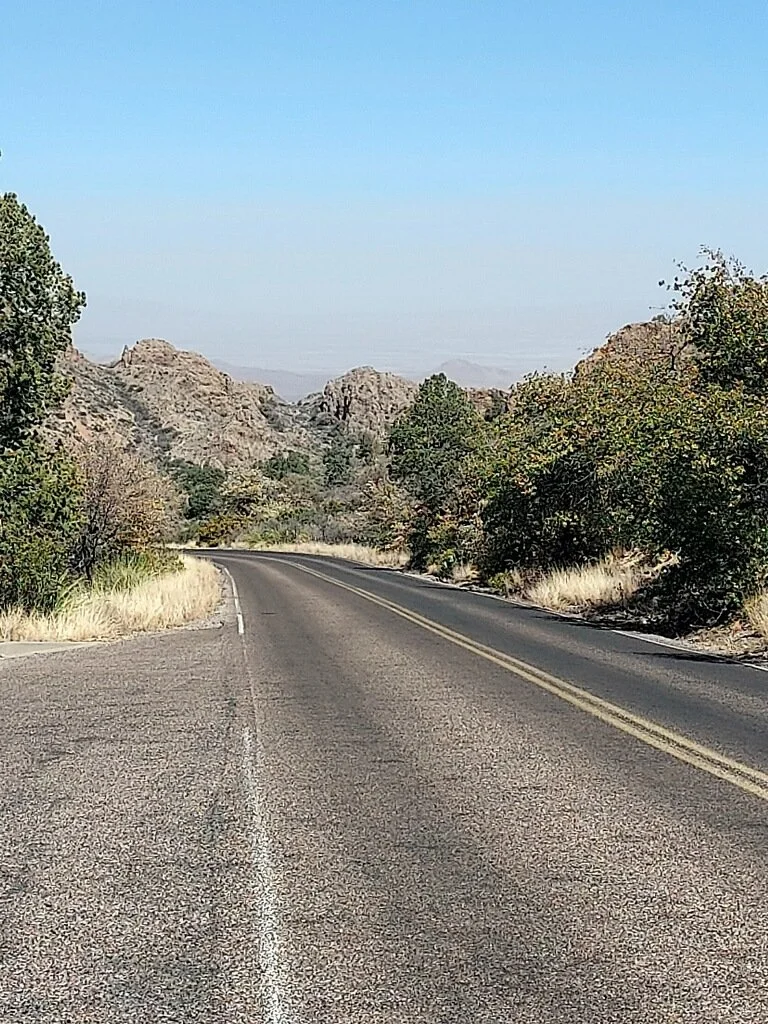 Another part of the park along the rio grande and Mexico is more green and lush with pine and pinion trees covering the mountainous outcrops.