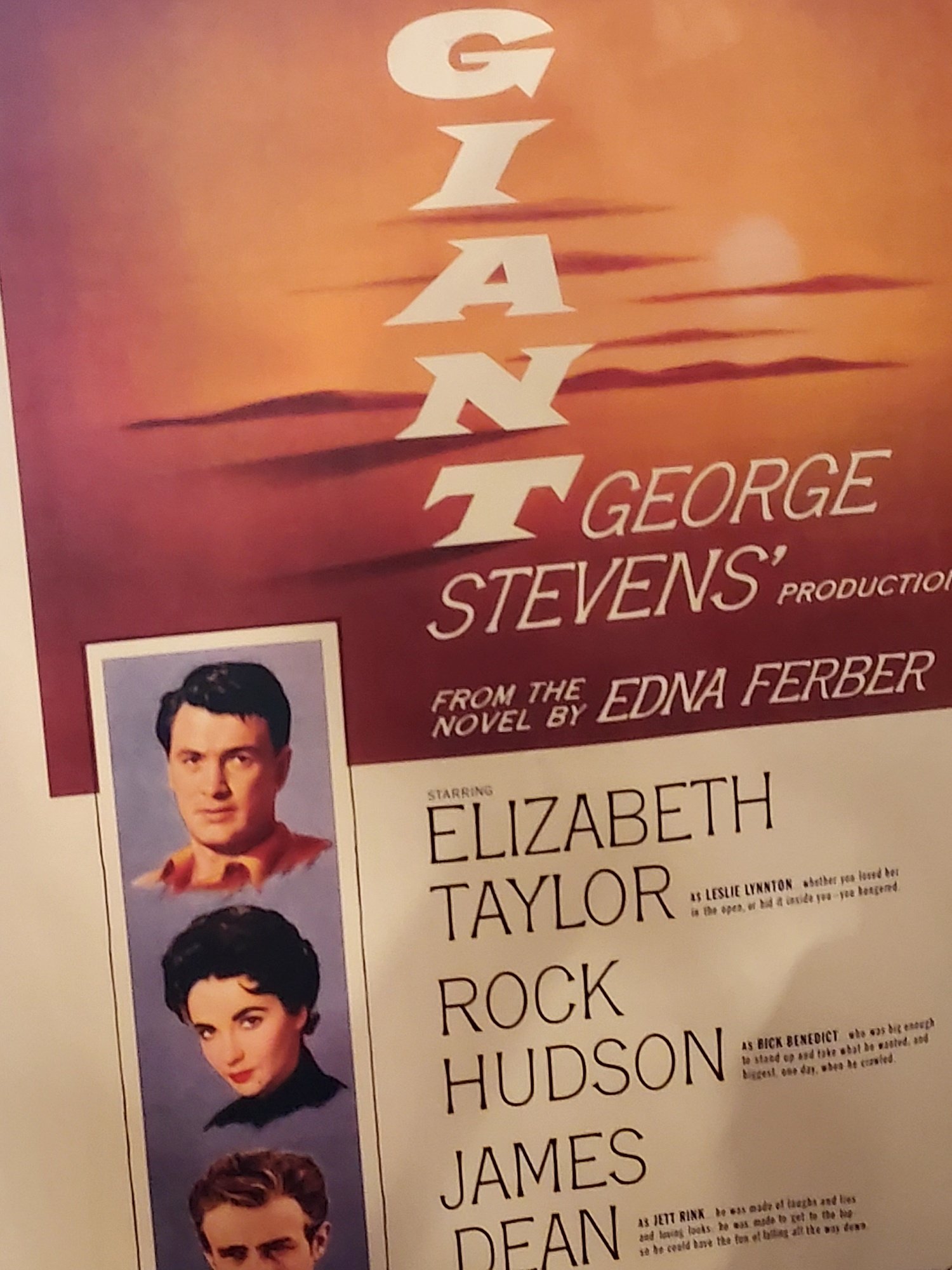 One small room is devoted to all things Giant. Pictures of the stars, a cardboard life size cutout of James Dean and the movie Giant is playing on a continuous loop.